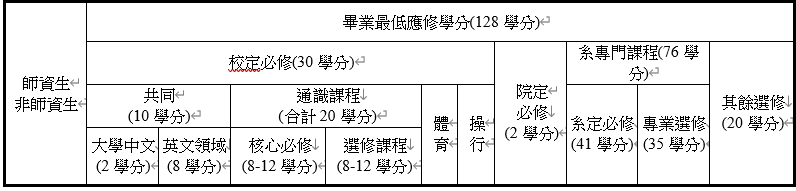幼兒教育學系109學年度入學學生必修科目學分數暨畢業總學分表、課程科目表