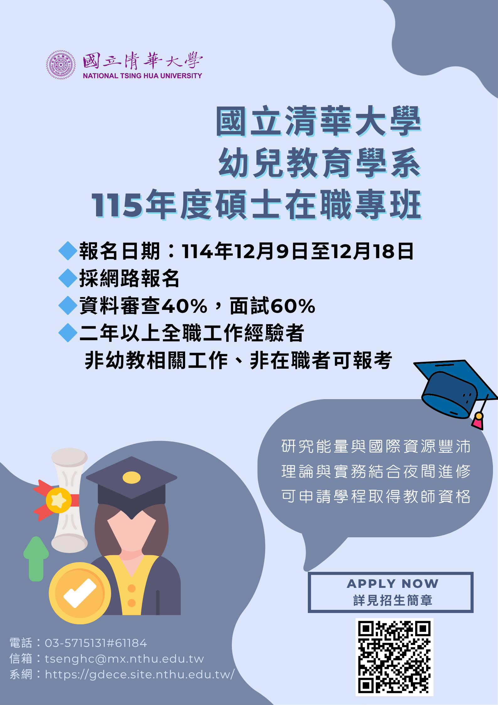 🆕國立清華大學115學年度碩士在職專班招生簡章公告(報名日期114/12/9-12/18)