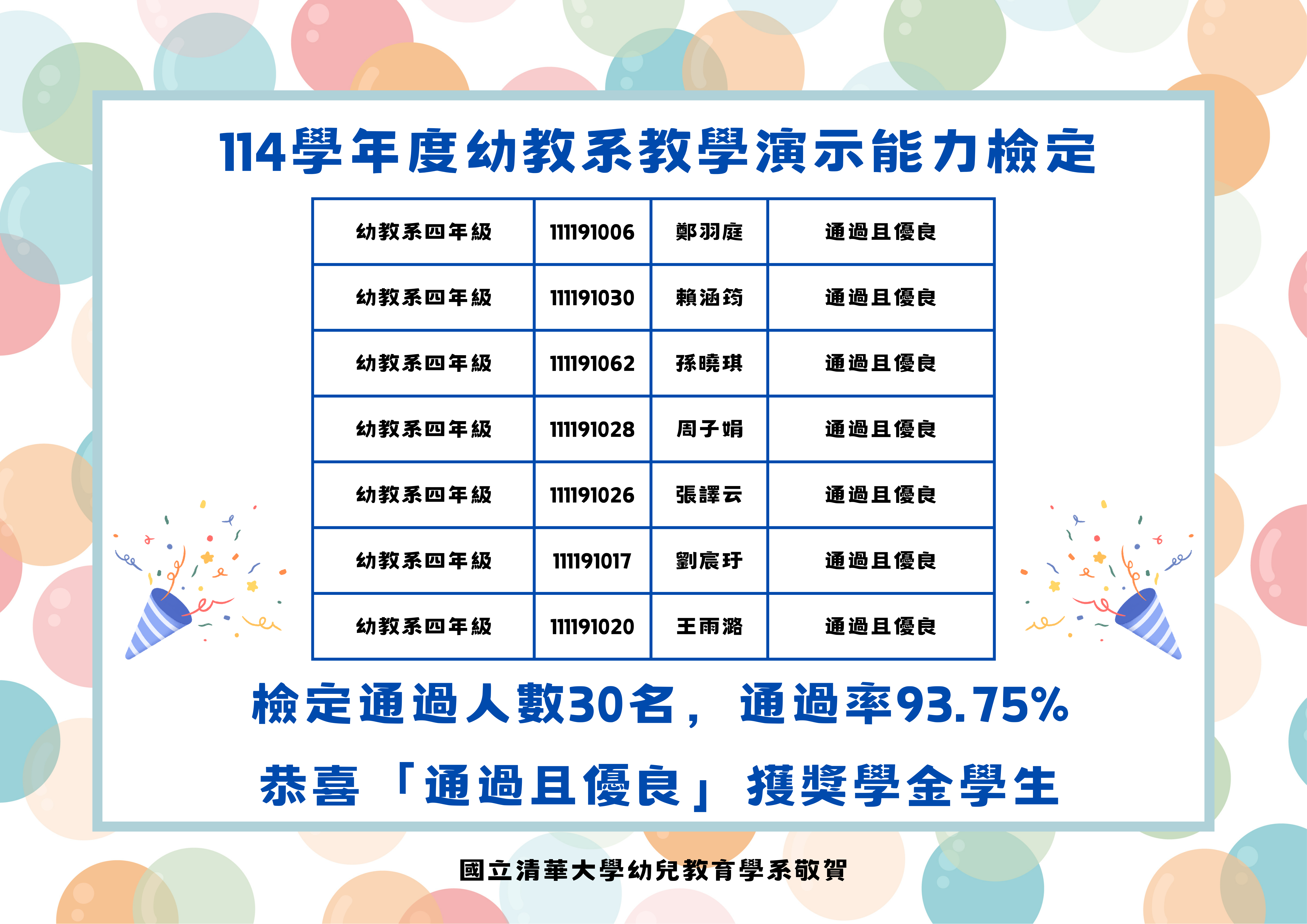 👉【114學年度幼教系教學演示能力檢定】結果公告